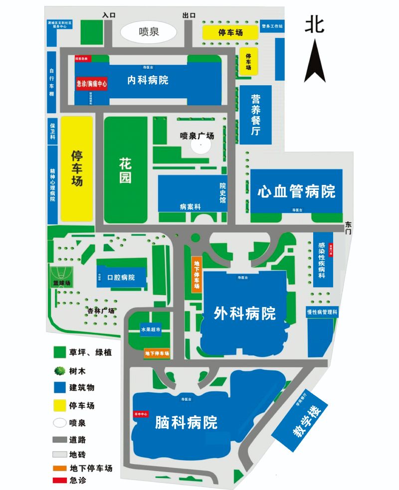 醫(yī)院重視患者的就醫(yī)體驗和員工的工作環(huán)境,強化“園林式”單位建設(shè),著力打造區(qū)域最美就診環(huán)境。整個院區(qū)整潔利落,以“杏林苑”為中心,向外輻射,建有口腔病院、精神心理病院、院史館、心血管病院、腦科病院、內(nèi)科病院、外科病院、科教樓等大樓,其余地方全部覆蓋綠植,綠化面積達7萬平方米,可為患者提供超過1200個停車位。院區(qū)景觀由中心娛樂休閑廣場、杏林苑、南廣場和東苑組成,每處景觀都經(jīng)過精心設(shè)計,融小橋流水、噴泉、雕塑、巨石、音樂、健身設(shè)施于一體,成為患者休閑娛樂、康復(fù)的家園。院內(nèi)巨石和雕塑布置寓意深遠,巨石刻字有對患者的祝福——“平安永駐”,有對醫(yī)務(wù)人員的告誡和責(zé)任——“大醫(yī)精誠”,雕塑中有中外古今之醫(yī)界名流,也有對促進醫(yī)院發(fā)展作出突出貢獻的當(dāng)代楷模。每棟住院樓自成體系,從門診到住院,從檢查到治療均在樓內(nèi)一站式完成。病區(qū)設(shè)計人性化,醫(yī)患分離,工作人員有獨立的生活和休息區(qū)域,住院病區(qū)整潔敞亮,優(yōu)雅舒適,配備有衛(wèi)生間,每張病床配備有獨立床頭智能平板電視,可提供影視觀看、健康宣教、費用查詢、移動支付、反饋意見等服務(wù)。