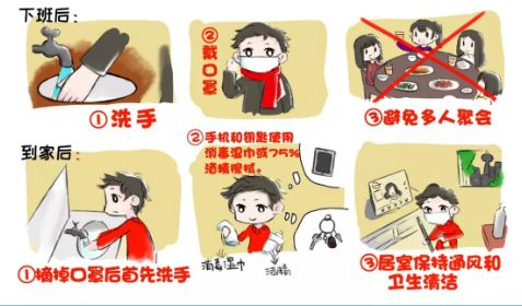 洗手后佩戴一次性醫(yī)用口罩外出,回到家中摘掉口罩后首先洗手消毒。手機和鑰匙使用消毒濕巾或75%酒精擦拭。居室保持通風和衛(wèi)生清潔,避免多人聚會。