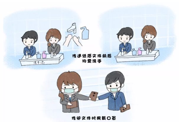 傳遞紙質(zhì)文件前后均需洗手,傳閱文件時佩戴口罩。