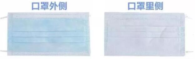 注意一次性外科口罩有里外之分,淺色面有吸濕功能,應該貼著嘴鼻,深色面朝外。