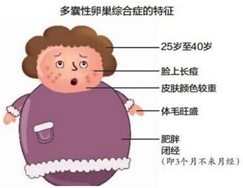 臨床表現:主要表現為月經失調、雄激素過量和肥胖。
