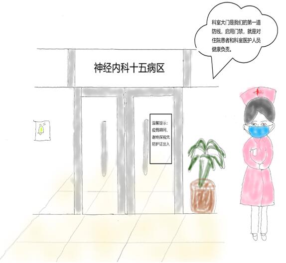 在疫情防控期間,科室日常的戰(zhàn)疫工作尤為重要,從“第一道防線”大門的守候到住院患者的日常宣教,每一步工作都有護(hù)士辛勤的付出。勝利在望,我們?nèi)孕枥^續(xù)堅(jiān)持,做好科室的日常防控工作,保障科室住院患者以及醫(yī)護(hù)人員的安全,是我們義不容辭的責(zé)任,同時(shí)也向奉獻(xiàn)在第一線的白衣天使們,致以崇高的敬意!下面簡(jiǎn)單介紹一下我科的防疫措施: