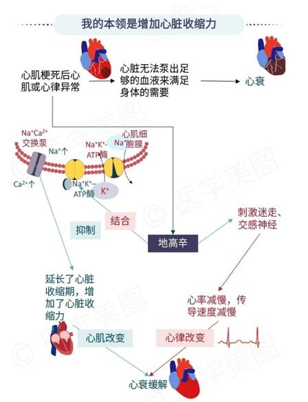 地高辛 是目前臨床最常使用的中度強(qiáng)心藥物,自1785年臨床使用至今已有200多年的歷史。具正性肌力作用,能減慢心率,有效改善心力衰竭癥狀和心功能,臨床常用于治療心力衰竭、心房顫動(dòng)及其他心律失常等。