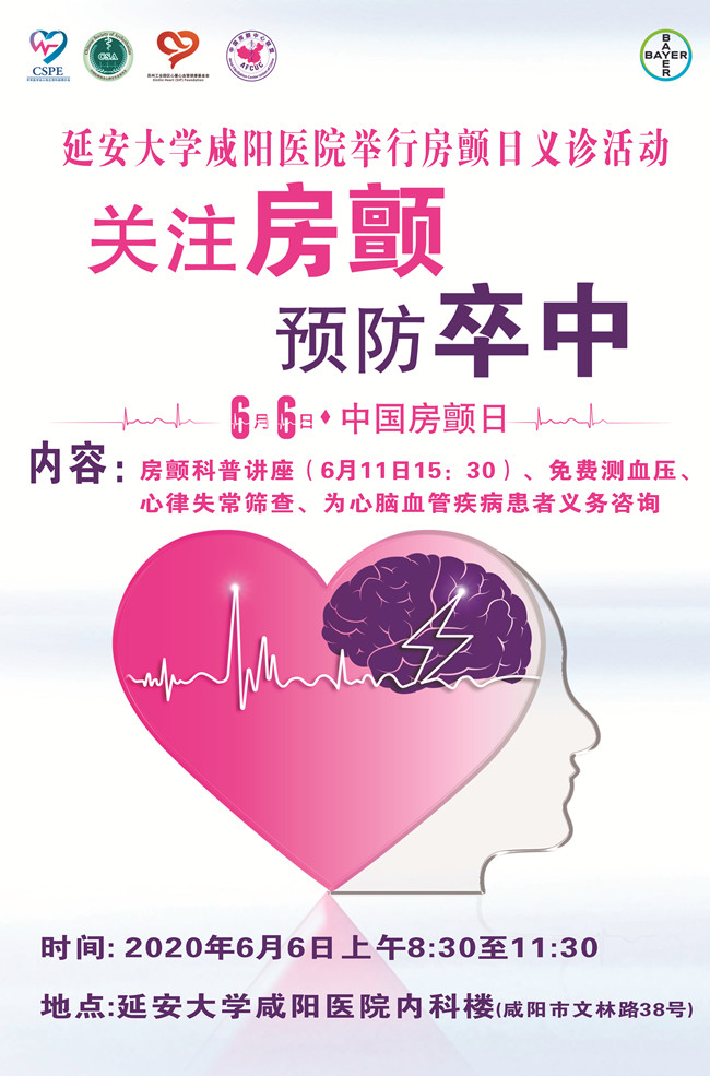 2020年6月6日是第八個“中國房顫日”,今年“中國房顫日”的主題為:“關注心房顫,預防腦卒中”。