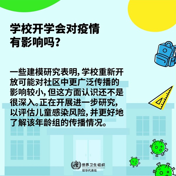 盡管目前的證據表明,兒童患嚴重疾病的風險總體上低于成人,我們還可以采取特別的預防措施來盡量減少兒童感染的風險。與此同時,應當考慮重返學校的益處。