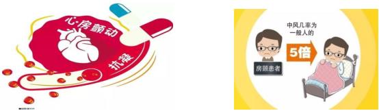 房顫時,心房喪失收縮功能,血液容易在心房內瘀滯而形成血栓,血栓脫落后可隨著血液流向全身各處,導致腦栓塞(中風),肢體動脈栓塞。