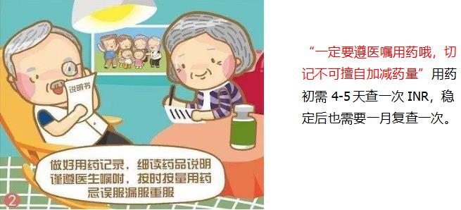 用藥期間需要定期抽血查 PT(凝血酶原時間),通過調整華法林的劑量將國際標準化比值(INR)調整到2-3之間,如INR值過低,提示華法林用量不足,如果INR值過高,提示藥物過量。