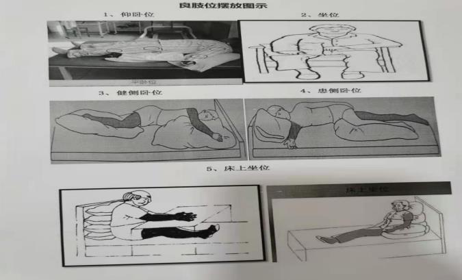 1.肢體偏癱 除了繼續(xù)按照護士提供的良肢位擺放圖執(zhí)行外,家屬還需協(xié)助做被動運動,被動按摩,即取仰臥位,由上到下、先健側(cè)后后患側(cè)做各關(guān)節(jié),各方向無痛范圍的輕柔被動活動和按摩。手法緩慢,有節(jié)奏,力度輕柔,一個動作3-5秒。當患者能獨立完成床上的主動運動后,進行坐位平衡和站立平衡訓練,有條件的家庭可以裝上護欄,使用防滑地毯,防滑鞋。同時做日常生活訓練,如梳頭,系扣,解帶,進餐,清潔等。
