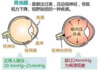 1.1眼壓是眼球內部壓力的簡稱。青光眼發病,和眼球內壓力異常有關。正常情況下,眼球有一定量的“水”填充支撐,就像一個水池,青光眼病人因為“下水道”堵住了,里面的“水”排不出去,就會導致眼球壓力升高,感覺眼睛酸脹、頭痛。持續的高眼壓會“壓壞視神經”,造成無法恢復的視力下降,甚至失明。