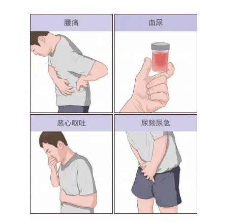 尿頻、尿急、尿痛:如果腎結石合并尿路感染,患者可出現尿頻、尿急、尿痛。但當輸尿管結石位于膀胱壁段時,即使沒有泌尿系感染,也可出現尿頻、尿急、尿痛。