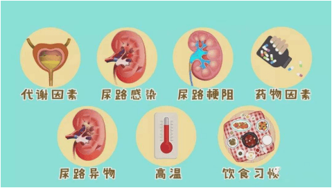 1.自然環境--如地區的差異,氣候條件差異,如炎熱的地區可因出汗多導致尿液濃度升高,水質中鈣質成分的增加使泌尿系結石更易于形成。