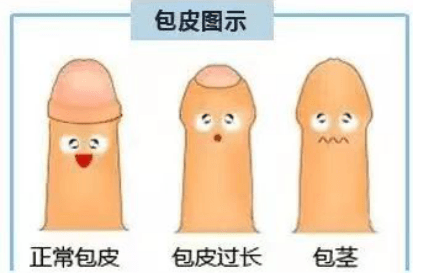 包皮可分為三種狀態(tài):正常包皮、包莖、包皮過長。