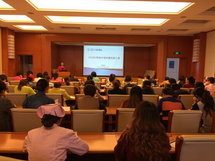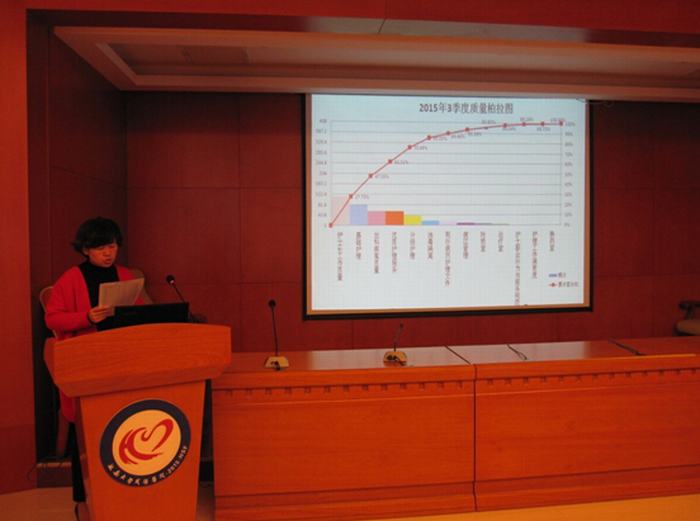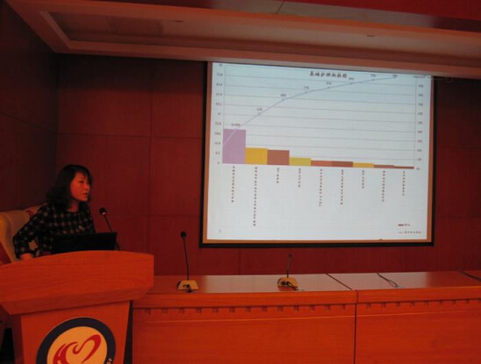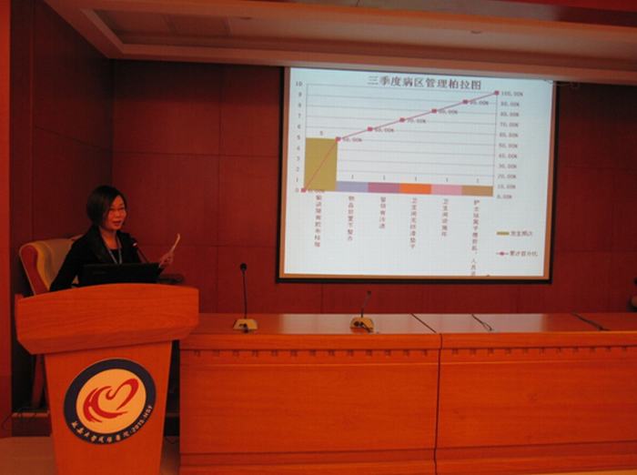 護理質量持續改進,首先要明白影響質量的因素,抓住首要問題。充分利用管理工具,從三季度開始,改變護理質量反饋形式。護理部徐京華主任鼓勵大家運用質量工具進行護理質量結果分析,要求各管理委員會將護理質量檢查結果運用柏拉圖等管理工具進行分析,以PPT形式進行匯報。2015年10月23日下午,在心臟病院二十樓第一學術廳進行三季度護理質量檢查結果匯報。護理質量管理委員會全體成員參加。各質檢組長將本組檢查存在問題做成柏拉圖,展示存在問題的頻次、所占比例,分析影響質量80%的那幾個問題,將柏拉圖運用于護理質量分析中,強調用數據說話。