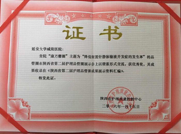 2016年1月14日至15日,由陜西省質(zhì)控中心舉辦的陜西省第二屆護(hù)理品管圈成果展示會在西安軍區(qū)招待所隆重召開。此次成果展示會選自全省的124個圈。大會有38個品管圈進(jìn)行展示,其中有18個品管圈進(jìn)行PPT匯報,20個品管圈進(jìn)行壁報展示。我院重癥醫(yī)學(xué)科三病區(qū)康乃馨圈,主題為:降低留置針靜脈輸液并發(fā)癥的發(fā)生率,參加壁報交流并獲優(yōu)秀獎,成果被錄入《陜西省第二屆護(hù)理品管圈成果展示資料匯編》為我院爭得榮譽。同時,在陜西省第二屆護(hù)理品管圈成果展示會上,我院仍是咸陽市唯一進(jìn)入成果展示的醫(yī)院,為咸陽市護(hù)理界再次爭得榮譽。
