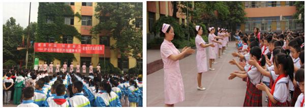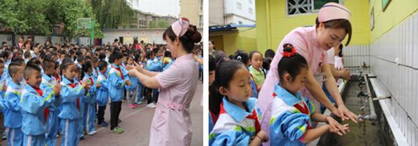 護(hù)士節(jié)前夕的一個早上,延安大學(xué)咸陽醫(yī)院的十多名護(hù)士在陳英總護(hù)士長帶領(lǐng)下,踏著清晨柔和的陽光,沿著校園小路,來到文林路小學(xué)。組織了“健康中國,科普助力—護(hù)士與您攜手共創(chuàng)健康生活”的進(jìn)校園,教洗手,健康生活活動。