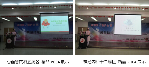 大會最后一項由心血管五病區、神經內科十二病區、心血管VIP病區、疼痛科為大家展示精品PDCA案例。同時,由我院第二屆品管圈一等獎獲得者神經內科四病區的螢火圈、以及獲得陜西省第二屆品管圈優秀獎的重癥三病區康乃馨圈為大家展示QCC的開展,別樣生動的表演,令在坐的護理姐妹們受益匪淺。在品管圈活動路上,我們不僅提升了質量,增長了知識,也收獲了友誼,更獲得了榮譽。