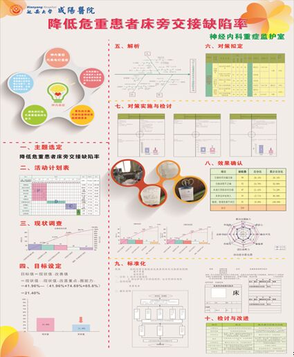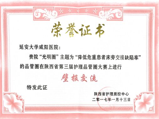 新年伊始,臘梅初開。1月13日由陜西省質控中心舉辦的 “2016年陜西省護理質控管理培訓班暨第三屆品管圈展示會”在小寨軍區招待所會議廳舉行。本次參加展示交流的40個品管圈,是從陜西省各地市164個品管圈中脫穎而出的,其中20個圈在本次大會進行展示并進行評選,20個圈以壁報形式展示,我院NICU“光明圈”主題:降低患者床頭交接缺陷率參加本次壁報展出。是咸陽市進入成果展示的兩家醫院之一。