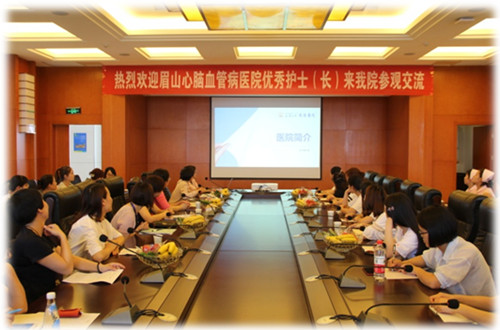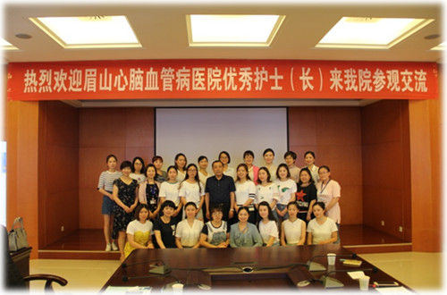 5月17日,眉山心腦血管病醫院王超英副主任帶領優秀護士、優秀護士長一行15人來我院參觀交流學習。我院護理部精心準備交流內容及接待方案。
