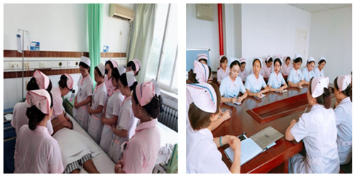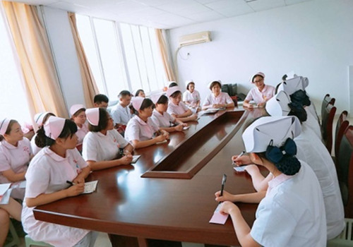 在接下來的討論環節中,實習學生熱情高漲,不斷地向老師提問求解,會場洋溢著濃郁的學習氣氛。消化內科護士長胡艷輝做了意見補充,使護理計劃更加完善合理,護理目標更加明確,護理安全防范措施落實關注點更加明晰。各位護士長結合自身豐富的工作經驗,各抒己見,圍繞該患者的護理、健康指導及常見并發癥的防范觀察,提出了自己的見解,及疾病治療護理的前沿知識。內科病院陳英總護士長對此次查房給予了充分的肯定,對專科性問題給予指導,并提出今后的護理教學查房將以多種形式展開,為推動我院護理質量提升夯實理論基礎。
