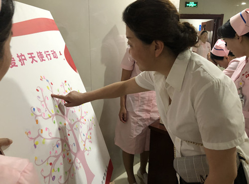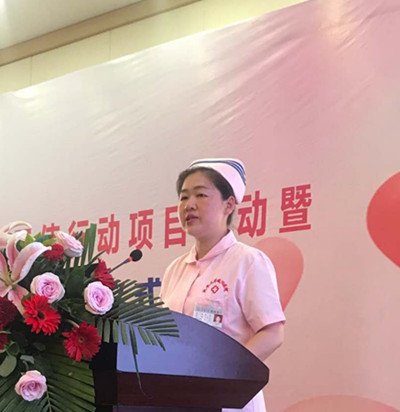 中國社會福利基金護愛基金張鳳霞副秘書長介紹了基金會和護愛基金的初衷和公益性,以及“愛護天使行動”項目的具體內容、目的及開展情況,并對此項目在我院落戶表示祝賀,下一步將結合我院護理工作和護理人員特點,為我院定制專業化、個性化的輔導和支持計劃。