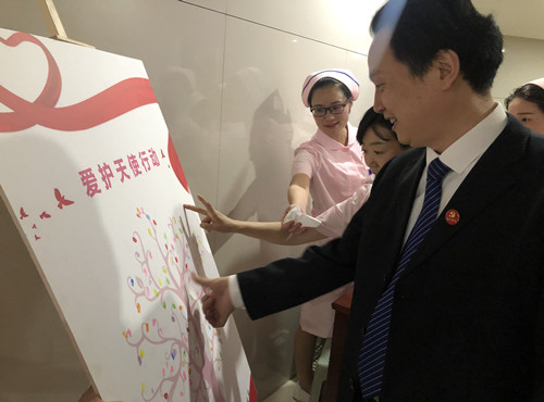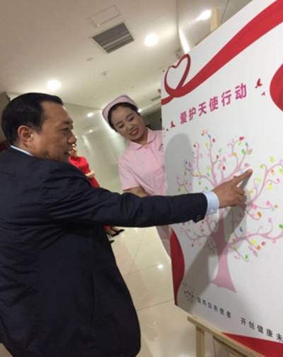 啟動儀式以共建愛心樹拉開帷幕,與會人員在愛心樹上用手印簽到,留下神圣的印記,代表著護理團隊的欣欣向榮與蓬勃發展。首先由李衛軍董事長為大會致辭,他表示愛護天使行動項目能落戶我院是我們的榮幸與驕傲。在我們喜迎建院70周年之際,“愛護天使行動—臨床護理人員心理關懷項目”在我院落地開花。希望通過此項目的實施,能夠提高護士的幸福感知力,培養護士積極向上的心態,幫助護士認識到健康職業心理的重要性,以提高醫療服務效率及滿意度,為“健康中國”貢獻力量。