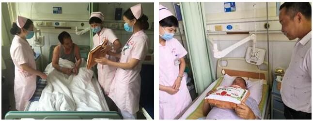 每到一位患者跟前,患者兒女將提前寫好祝福語的卡片放到患者手中,并輕輕地說一句:“爸爸,節日快樂!”醫護人員將禮物送到患者手里,患者驚喜不已、感動萬分。患者楊某的女兒拉著護士的手說:“太感謝你們了,我平時來的少,父親住在這里,你們這樣精心的照顧,我安心很多!”患者趙某的愛人流下激動的淚水,說道:“你們趙叔叔的時間不多了,感謝你們在他生命的最后階段給他過了一個不一樣的父親節,你們想的真是太周到、做的太好了!”