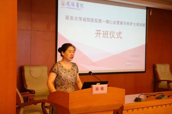 開班儀式由心血管病院黨文婷總護士長主持,邀請延安大學咸陽醫院護理部楊敏主任、心血管內科各亞專業學科帶頭人、各病區護士長、省級??谱o士以及培訓學員50余人參加此次開班儀式。