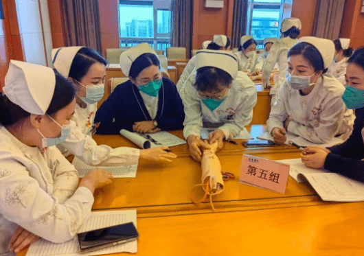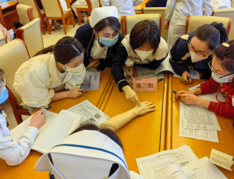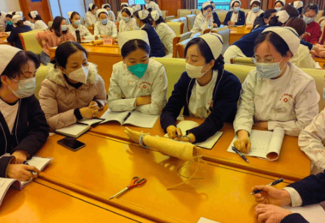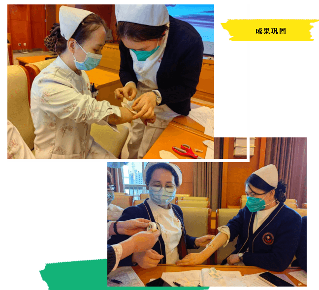 激烈的討論之后,通過一對一、手把手的操作指導,讓參加培訓人員在練習過程中學以致用,更加熟練、準確地踐行留置針規(guī)范的固定方法及貼膜撕脫法。