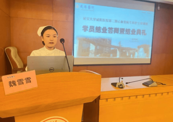 結(jié)業(yè)答辯時,學員們以飽滿的精神狀態(tài),應(yīng)對評委們的提問。最后,為全體學員頒發(fā)了延安大學咸陽醫(yī)院心血管病專科護士證書,并根據(jù)理論考核、操作考核、護理病例匯報及日常表現(xiàn)的綜合考評,評選出10名第二期心血管病??谱o士培訓班優(yōu)秀學員。