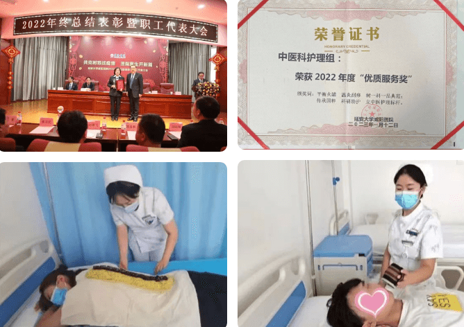 弘揚(yáng)為引,傳承為基。以中醫(yī)特色專科護(hù)理理論為基礎(chǔ),不斷探索中醫(yī)特色護(hù)理的應(yīng)用與創(chuàng)新。申報(bào)院內(nèi)護(hù)理科研課題4項(xiàng)、新技術(shù)項(xiàng)目2項(xiàng);發(fā)表論文9篇、公眾號(hào)文章30余篇,科普宣傳10余次。科室開(kāi)展多項(xiàng)中醫(yī)適宜技術(shù),如平衡火罐、溫灸刮痧、火龍灸、雷火灸、穴位注射、穴位貼敷、中藥封包等。同時(shí)扎實(shí)開(kāi)展“服務(wù)人性化,中醫(yī)藥特色化,護(hù)理整體化”的中醫(yī)特色護(hù)理模式,秉承中醫(yī)學(xué)整體觀念和辯證施護(hù)的基本特點(diǎn),深化“一科一品”優(yōu)質(zhì)護(hù)理服務(wù)內(nèi)涵。積極發(fā)揮中醫(yī)護(hù)理在疾病預(yù)防、治療、康復(fù)等方面的重要作用,根據(jù)季節(jié)、節(jié)氣不同,有針對(duì)性地對(duì)患者進(jìn)行生活與飲食等方面的指導(dǎo)。在護(hù)理團(tuán)隊(duì)的辛勤耕耘下,得到了廣泛的肯定與信賴,中醫(yī)科護(hù)理組榮獲延安大學(xué)咸陽(yáng)醫(yī)院2022年度“優(yōu)質(zhì)服務(wù)獎(jiǎng)”。