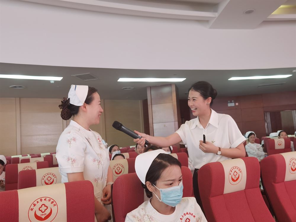 首先,楊敏院長助理對遠道而來的山東威高集團老師的蒞臨指導表示誠摯的歡迎和衷心的感謝。她指出護士服務能力的培養是護理隊伍建設的重要環節。無論護士本身是否意識到,良好的言談舉止、有效的溝通,都可以向患者傳遞親慰藉,創造一個友善、親切、健康向上的人文環境,產生輕松愉快的情感體驗,有助于病人保持適宜的身心狀態,達到良好的治療效果。