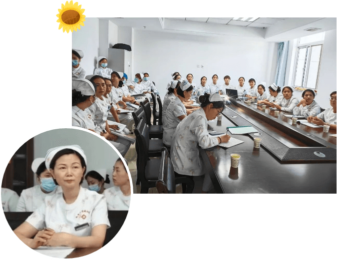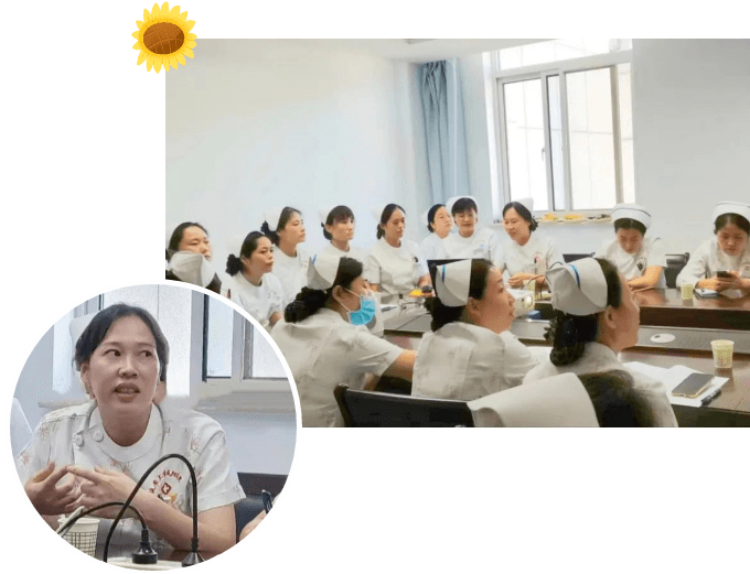 討論會從病情介紹、主要治療、常見護理問題及護理措施、護理疑難點討論四個方面展開。首先,責任護士李春肖作了病例匯報,闡明了患者合并癥多,治療復雜,涉及多專科護理知識、護理問題繁多等情況,劉曦護士長引導科室護士根據該患者病史及癥狀體征,通過低年資護士率先發言、高年資護士補充、護士長總結完善的方式,擬定護理計劃,提出護理問題。大家展開積極的發言,先后為該患者共列舉出16個護理問題,根據標準護理計劃首優、中優、次優原則,進一步找出患者首優重要護理問題,并給與相應的護理措施。