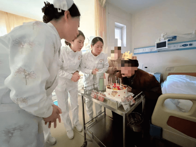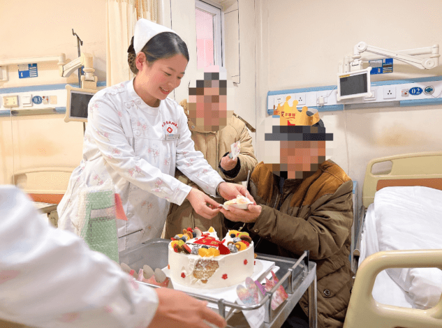 當日早晨,醫務人員將提前為老壽星準備好的生日蛋糕和手寫的心愿卡片推到老人面前,并祝愿他福如東海、壽比南山!慶祝過后把蛋糕分發給病區的患者,讓大家一起分享這份喜悅,熱鬧的祝壽氛圍、暖暖的生日歌曲、濃濃的關懷之情,讓整個病區充滿愛的溫度。