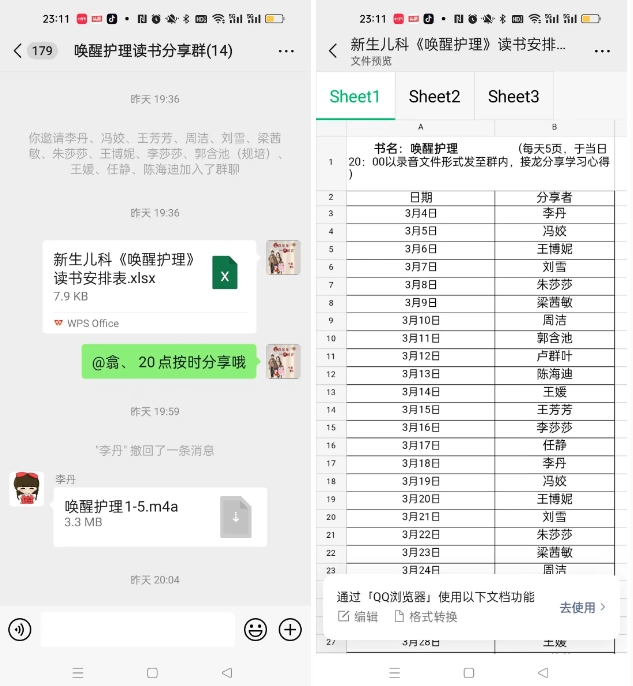 "腹有詩書氣自華,最是書香能致遠”,讀書可以明理、啟智、養(yǎng)德。為積極響應護理服務行動計劃,進一步根深人文護理理念,提高護理隊伍人文素養(yǎng),細化人文關懷措施,為患者提供人性化護理服務。兒科二病區(qū)護士長盧群葉組織大家開展“同讀書,共進步”活動。大家集思廣益制定了共讀方案及讀書實施表,護士每天輪流閱讀,于當日20:00以錄音文件形式發(fā)至微信群內,大家利用碎片化時間接龍分享聽書心得。