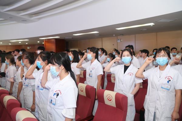 歡迎儀式上,科研教學管理中心韓曉芳主任代表醫院對實習生來院學習表示歡迎,并對醫院的基本情況進行了介紹,隨后對大家在醫院的學習生活提出六點寶貴的意見,希望同學們能迅速從思想上完成角色定位和轉變,更好、更快地適應新環境,以滿腔熱情投身于實習中去,做一個文化素養與專業素質兼備的醫學人。隨后,學生代表趙亞鑫帶領全體實習生進行醫學生宣誓。