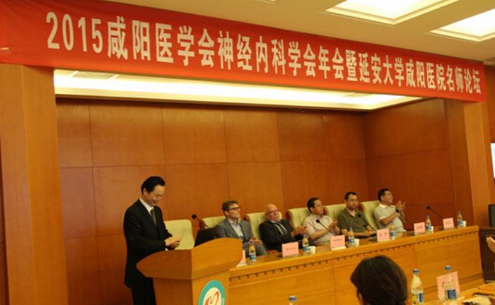 5月26日,由咸陽市醫學會神經內科學會主辦,我院承辦的2015年咸陽市醫學會神經內科學會年會延安大學咸陽醫院名師論壇在我院心臟病院20樓會議室召開。本次年會特邀經驗豐富的第四軍醫大學西京醫院神經內科主任趙鋼教授、歐洲臭氧協會副主席Gerd Wasser教授、德國著名醫學專家Dr.med.Jost Thissen教授、延安大學咸陽醫院CT/MR室主任劉連峰副教授開展講座。我院副院長張海濤教授、副院長慕廷民教授、各科神經內科主任以及來自全市各區縣的100多名神經內科精英與骨干力量出席了此次會議。