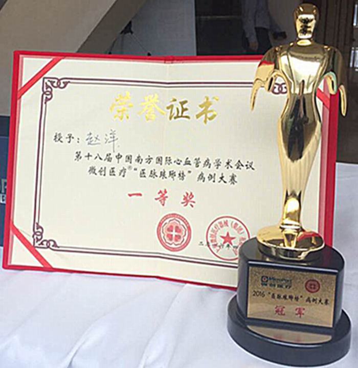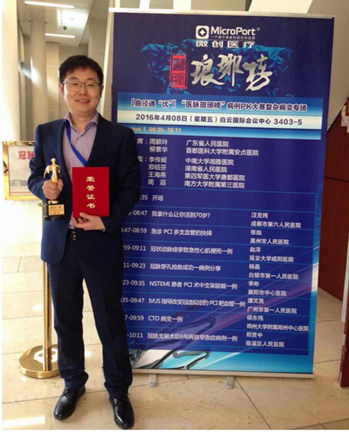 2016年4月7日至10日,第18屆中國(guó)南方國(guó)際心血管病學(xué)術(shù)會(huì)議在廣州白云國(guó)際會(huì)議中心舉行,延安大學(xué)咸陽(yáng)醫(yī)院心血管病院心內(nèi)科一病區(qū)副主任趙洋撰寫(xiě)的論文《冠狀動(dòng)脈痙攣致急性心肌梗死一例》被大會(huì)選為專題發(fā)言。在[曲徑通“優(yōu)”]—“醫(yī)脈瑯琊榜”病例復(fù)雜病變專場(chǎng)大賽中,經(jīng)過(guò)入圍決賽的16名選手的激烈角逐,趙洋最終脫穎而出,榮獲病例大賽一等獎(jiǎng)。