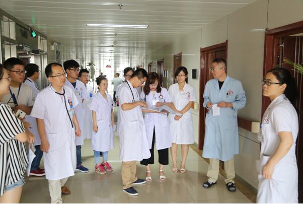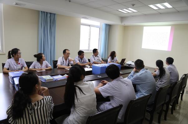 首先,學(xué)員瞿華茹匯報病史并做??撇轶w,帶教老師李新國對查體過程中不規(guī)范之處進(jìn)行糾正并做了示范性演示。隨后,在病區(qū)示教室,左梅主任、王軍主任結(jié)合查房所見、所聽,認(rèn)真分析了患者病情,詳細(xì)介紹了醫(yī)療查房與教學(xué)查房的區(qū)別,指導(dǎo)和糾正了一些查房動作和流程,點評了查房存在的不足,指出帶教老師和學(xué)員一定要針對病人病情找出問題、解決問題。