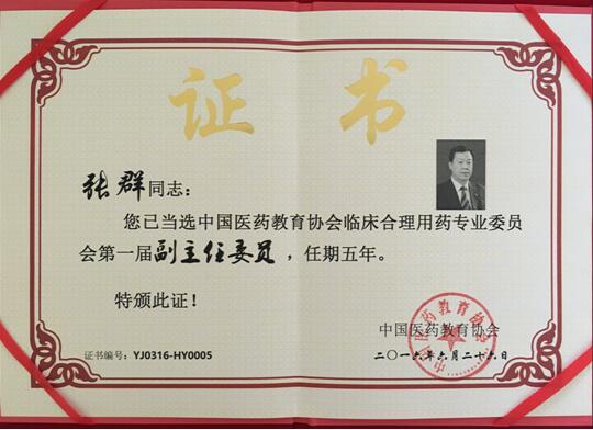 熱烈祝賀我院四位同志成功當選為中國醫藥教育協會臨床合理用藥專業委員會各級委員