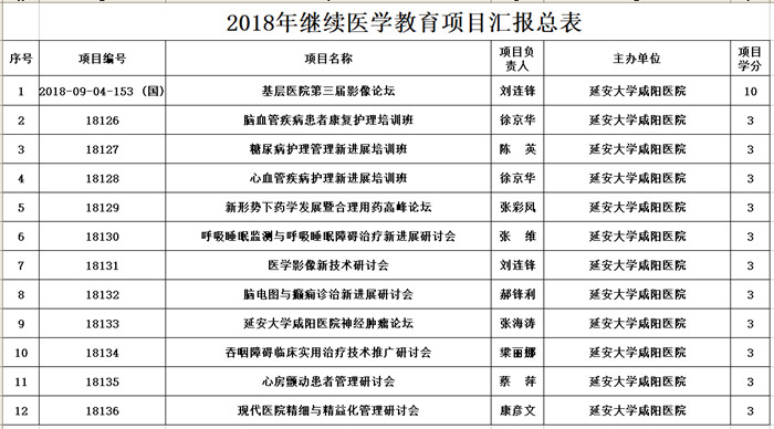 項目申報期間,科教部積極組織臨床科室申報,結合各專業國內外進展認真進行選題,精心撰寫申請書,對申報各環節嚴格把關。最終經過全國繼續醫學教育委員會評審,我院1項被批準為國家級繼續醫學教育項目。經陜西省醫學會組織評審,我院11項繼續醫學教育項目順利獲批,繼續醫學教育項目涵蓋了醫院管理、神經內科、神經外科、康復醫學、心血管內科、內分泌、藥學、醫學影像、護理學等多個專業。這些項目的獲批,不僅有利于拓展我院醫護人員知識面,了解相關技術領域的新進展與新成果,提高專業技能,而且將帶動我院各個專業的促進與協調發展,將對我院學科建設產生積極推動的作用,同時帶動一批高質量、有特色的優勢學科,提高醫院的整體醫療技術水平和服務水平,提高醫院科技創新能力,增強醫院核心競爭力。