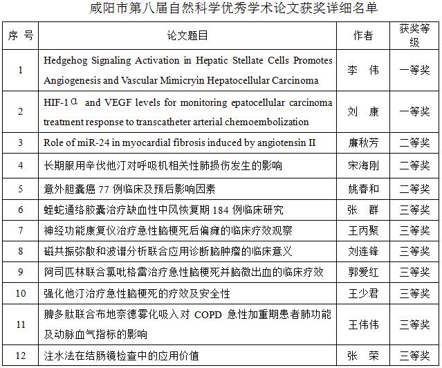 ——我院12篇論文喜獲咸陽市第八屆自然科學優秀學術論文