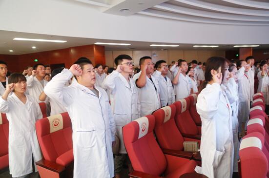歡迎儀式上,科研教學管理中心韓曉芳主任代表醫院對實習生來院學習表示歡迎,并對醫院的基本情況進行了介紹,隨后對大家在醫院的學習生活提出幾點寶貴的意見,希望同學們能迅速從思想上完成角色定位和轉變,更好、更快的適應新環境,以滿腔熱情投身于實習中去,做一個文化素養與專業素質兼備的醫學人。隨后,學生代表熊林勇帶領全體實習生進行宣誓。