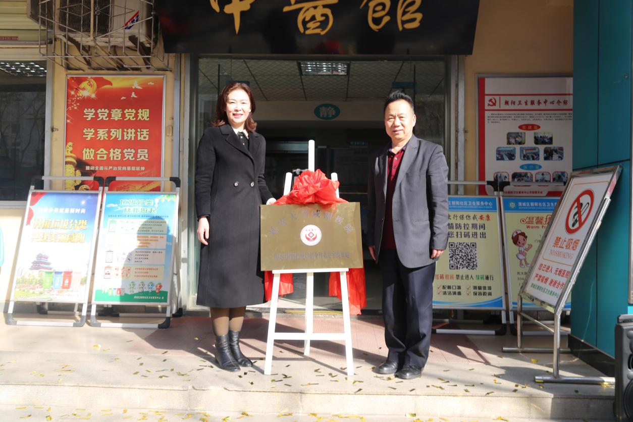隨后,張海濤院長與黃水山主任簽訂了全科住培基層實踐基地合作協議,韓曉芳主任與黃水山主任為住培全科基層實踐基地揭牌。最后,揭幕儀式在禮花的響聲中圓滿落幕,全體成員合影留念,并隨同社區工作人員一起參觀了朝陽社區衛生服務中心。