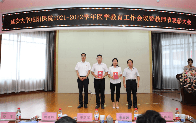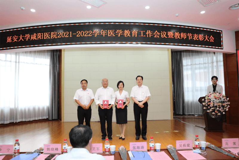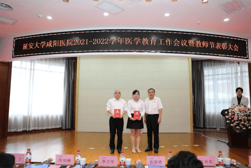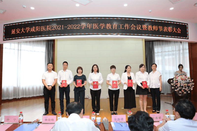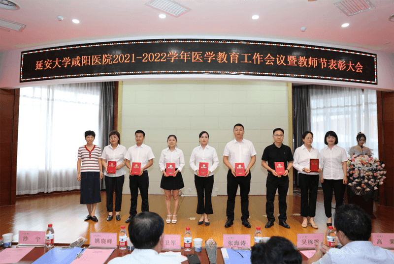 李衛軍主席宣讀了《延安大學咸陽醫院關于表彰2021-2022學年優秀住培專業基地、優秀教研室、優秀保障科室、優秀帶教科室和優秀帶教老師的通知》的文件。各院領導給獲獎單位及個人頒發了榮譽證書。