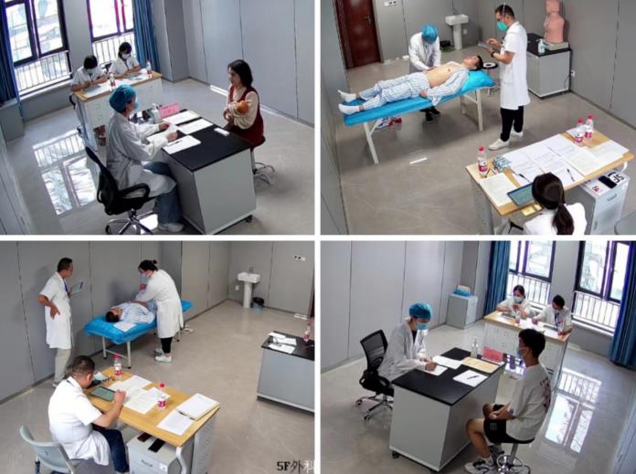 臨床技能操作考試在我院臨床技能中心五樓進行,主要考查病史采集、體格檢查和基本操作技能,同時對溝通交流能力與人文關(guān)懷進行評價。技能操作采用OSCE多站考核,每組6站,分為兩組,共12站同時進行。各技能考室前期在考試物資籌備、考官培訓(xùn)、考務(wù)安排、標準化病人和志愿者招募培訓(xùn)、考試模擬演練等方面做了大量工作,確保了技能考試的順利完成??荚嚻陂g,考官嚴肅認真,考務(wù)人員細心周到,各環(huán)節(jié)銜接順暢,技能操作考試圓滿完成。本次臨床技能操作考試是臨床醫(yī)學(xué)專業(yè)(本科)學(xué)生首次在我院參加臨床專業(yè)國家級考試;是我院新的臨床技能培訓(xùn)中心全流程首次采用OSCE技能操作考試模式;也是我院在技能操作考試中使用標準化病人(SP)機制的進一步完善;實現(xiàn)了我院教學(xué)工作開創(chuàng)性的發(fā)展。