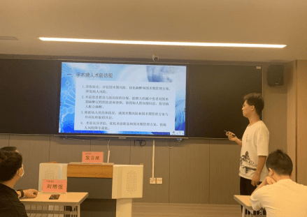 現有臨床醫學實習生57人,分為6組,采用分組匯報的形式進行PPT講解,宋卓珊、武樂樂、熊思維、雒琳焱、李遠、周婷婷六名實習生分別從人文溝通、病例分析、實習收獲、實習總結、技能操作、人文素養等方面匯報了自己在科室一個月的實習期間所學所獲,同時也講述了自己所在科室發生的一些暖心故事,更加肯定了從醫的初衷。