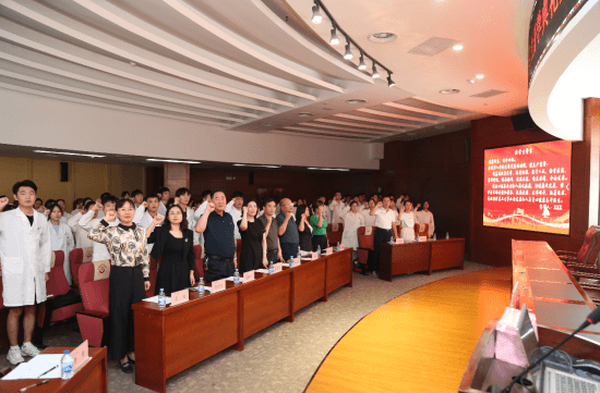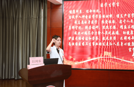 巨同樂同學帶領全體老師、見習生莊嚴宣誓,“健康所系,性命相托……”,穿著白衣,心有錦緞,少年不懼歲月長,彼方仍有榮光在,所有同學立志為醫學事業奮斗終生。
