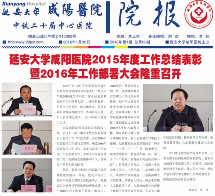 延安大學(xué)咸陽(yáng)醫(yī)院院報(bào) 2016年 第一期