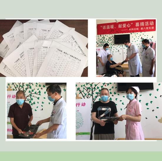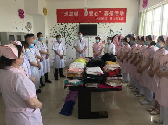 為充分發揮黨員先鋒模范帶頭、示范輻射作用,展示良好的黨員形象,提升黨支部的創造力、凝聚力和戰斗力,6月3日下午由內科綜合辦、第八黨支部牽頭在我院精神科進行“送溫暖、獻愛心”捐贈衣物活動,院黨委辦公室耿月同志、內科病院全體護士長、第八黨支部全體黨員及患者代表共30余人參加了本次活動。