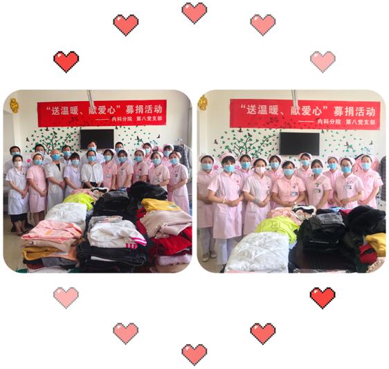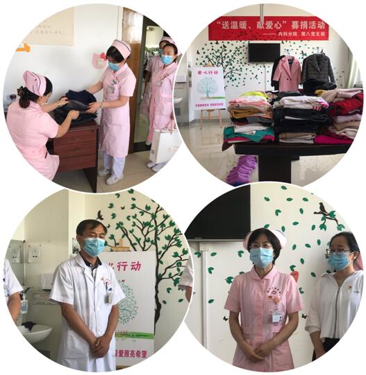 精神科胡曉科主任向大家的善舉致以誠摯的謝意,表示此次捐贈,溫暖了每一顆心靈,并倡導全院人員繼續關注和幫助社會弱勢群體。贈人玫瑰,手有余香,一件衣物送出一份溫暖,一顆愛心帶來一份感動,奉獻愛心,傳播正能量。捐衣物不僅可以使舊物得到循環利用,更重要的是可以讓需要幫助的人得到關愛與溫暖,感受到社會的關懷,使他們以積極樂觀的心態去面對生活,早日康復,回歸家庭,回歸社會。延安大學咸陽醫院第八黨支部將繼續以“黨員示范崗”活動為契機,營造學先進、趕先進、爭先進的濃厚氛圍,推動“黨員示范崗”活動常態化,為實現我院跨越式發展的奮斗目標做出更大貢獻!